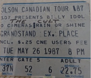 That spring, The Cult came through Toronto on their Love Removal Machine tour. It was a Canadian National Exhibition (CNE) Grandstand show, but they weren’t headlining, they were opening for Billy Idol, who was more popular at the time but had a different sound and following. It was a Thursday night, and I couldn’t find anyone to go with me, so I went solo.