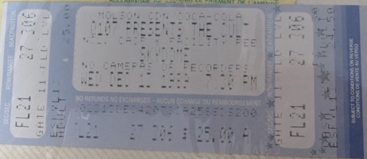 We bought floor tickets at the record store near our school, in the floor section, but way in the back. We started drinking Captain Morgan & Coke around 6 that evening at his apartment in Mississauga, then kept it going on the bus and subway. As the night wore on, The Grinch got more belligerent, bumping into people on the subway to provoke them.